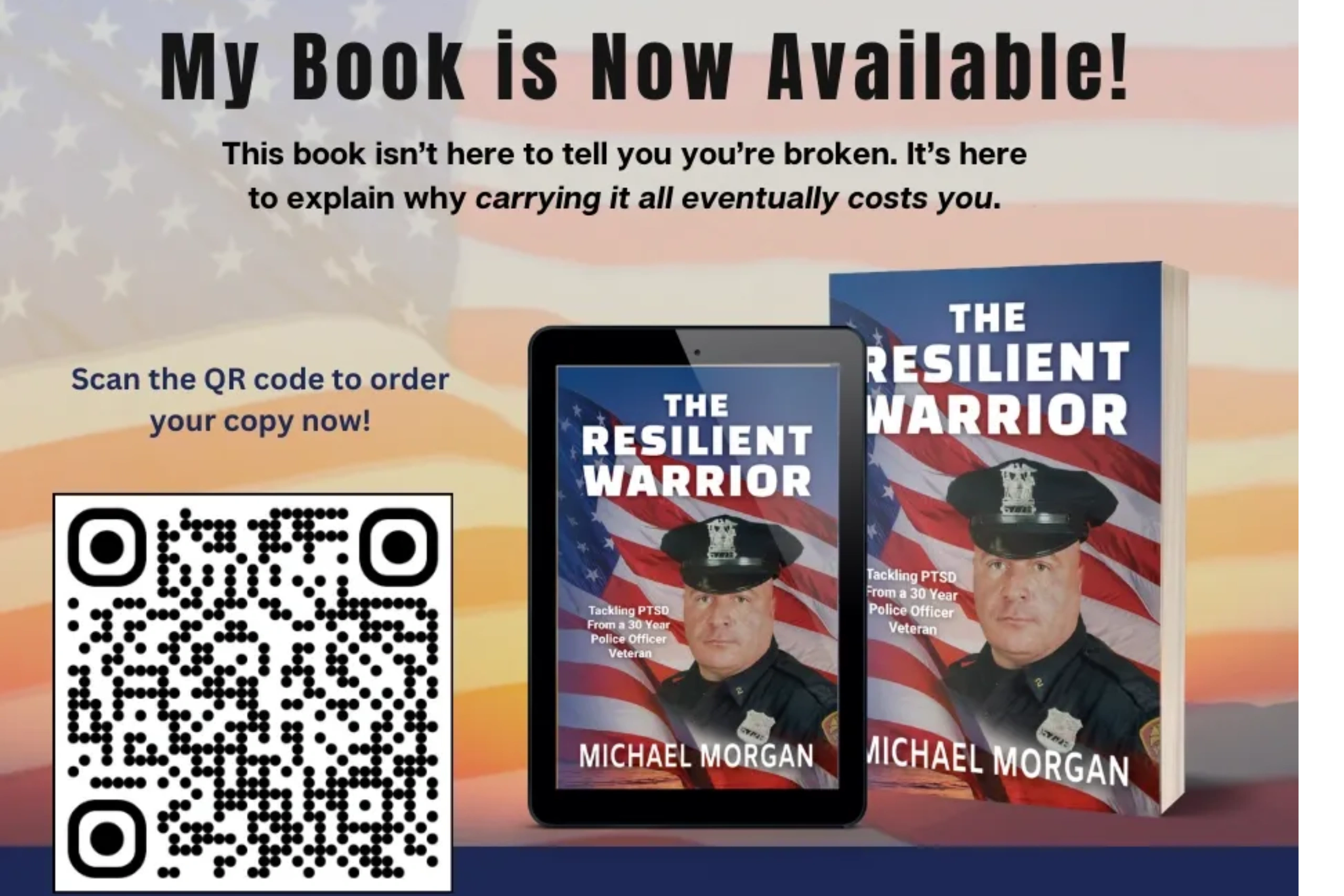 Today, I’m a motivational speaker, podcast host, author and advocate for mental wellness in the first responder and veteran community. Through storytelling, tools for resilience, and honest conversations about mental health, I help others understand one truth: